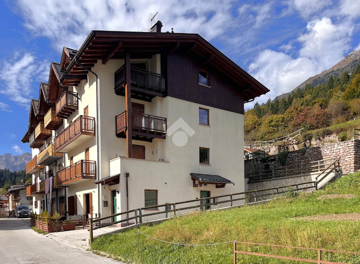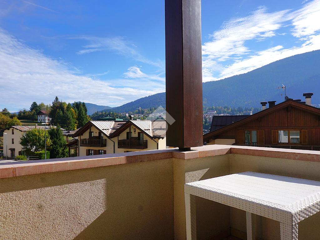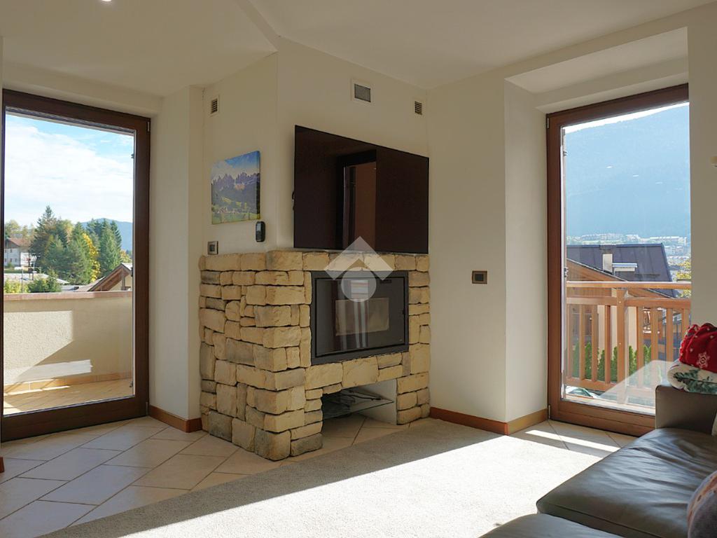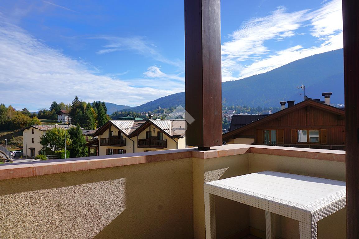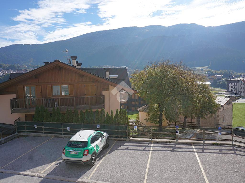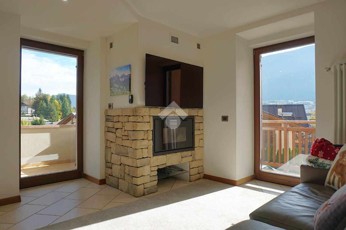 In zona riservata e panoramica, prestigioso primo piano libero su tre lati, composto da ingresso, ampia zona giorno, cucinotto, doppi servizi, due camere, disimpegno, due balconi e terrazzo di oltre 30 mq; completo di cantina e due posti auto esterni di proprietà. Riscaldamento termoautonomo a gas metano. Comodo ai servizi, a due passi dal parco e dal centro sportivo. Ottima vista sulla Paganella e sul paese. Finemente arredato.