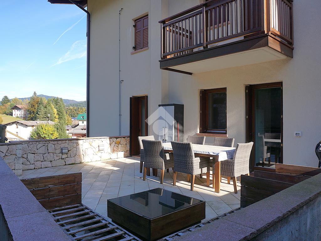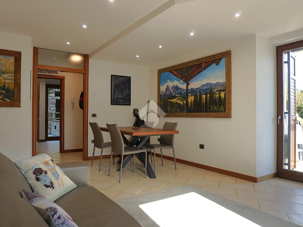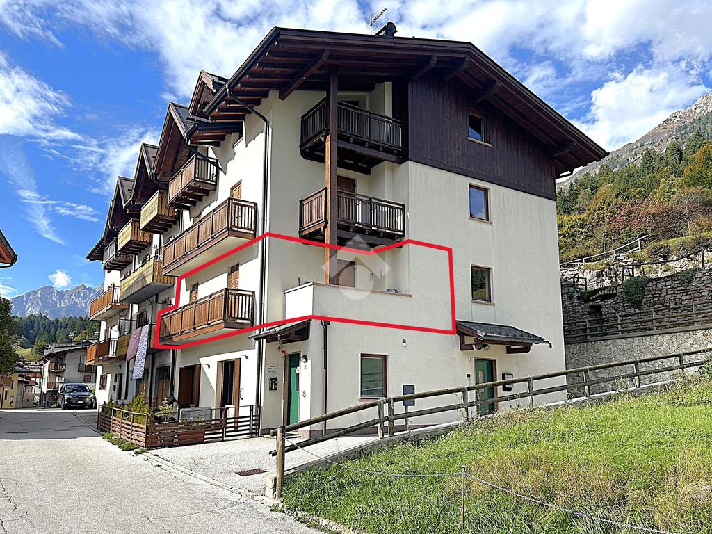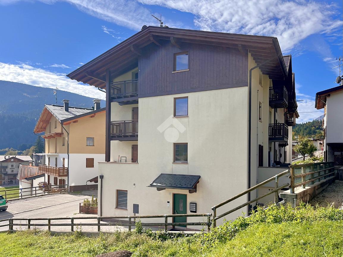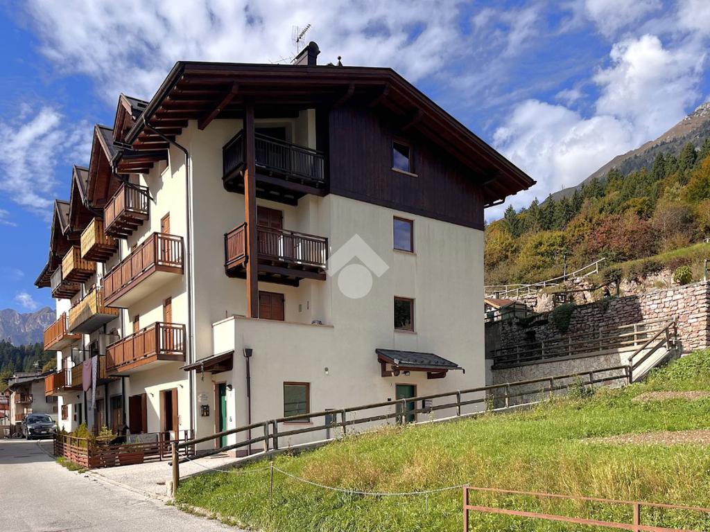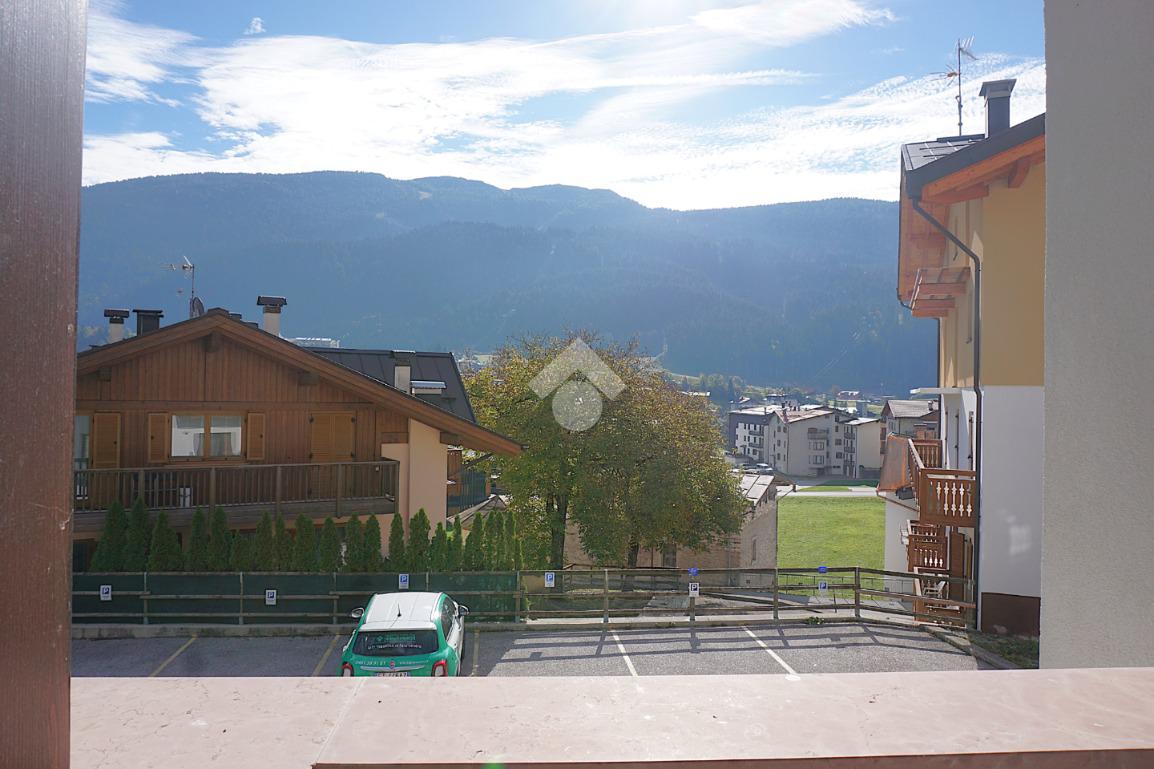 In zona riservata e panoramica, prestigioso primo piano libero su tre lati, composto da ingresso, ampia zona giorno, cucinotto, doppi servizi, due camere, disimpegno, due balconi e terrazzo di oltre 30 mq; completo di cantina e due posti auto esterni di proprietà. Riscaldamento termoautonomo a gas metano. Comodo ai servizi, a due passi dal parco e dal centro sportivo. Ottima vista sulla Paganella e sul paese. Finemente arredato.