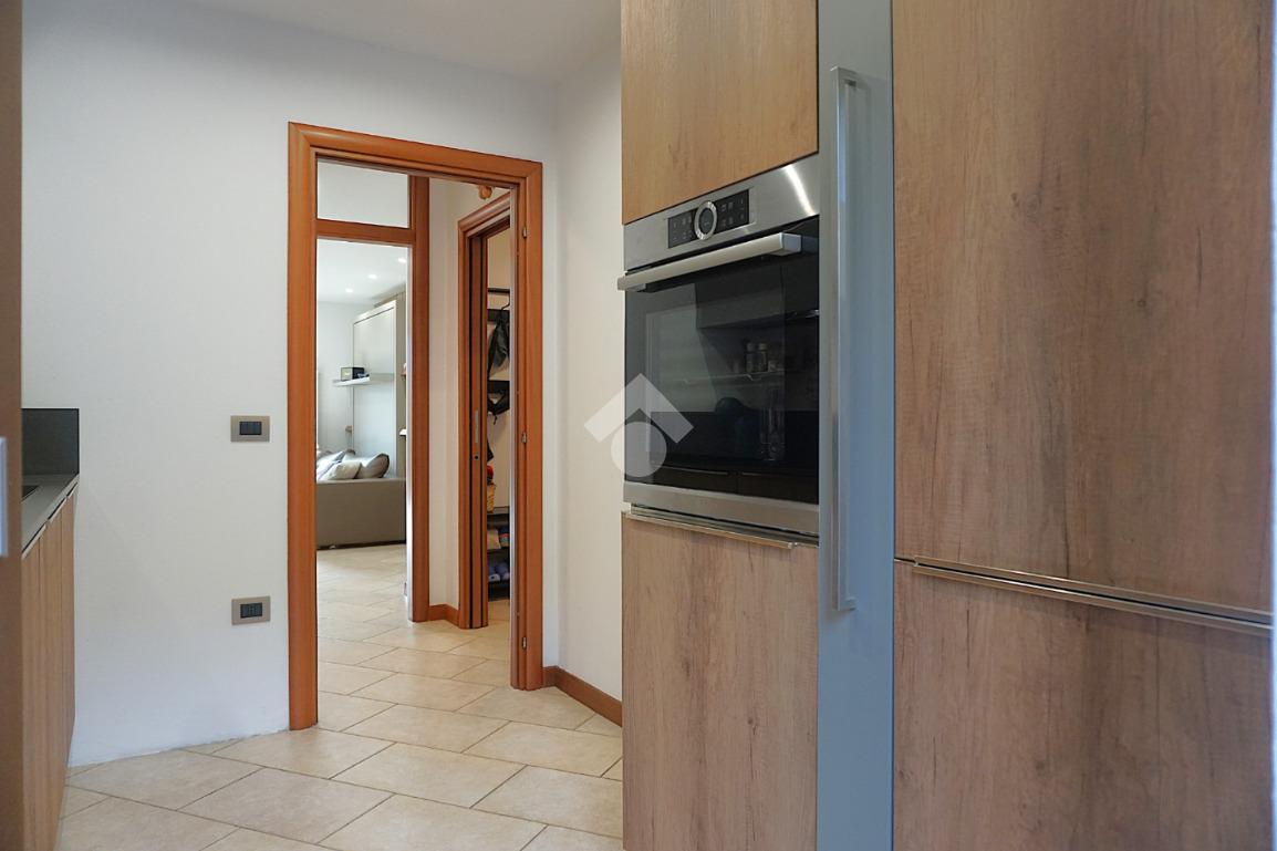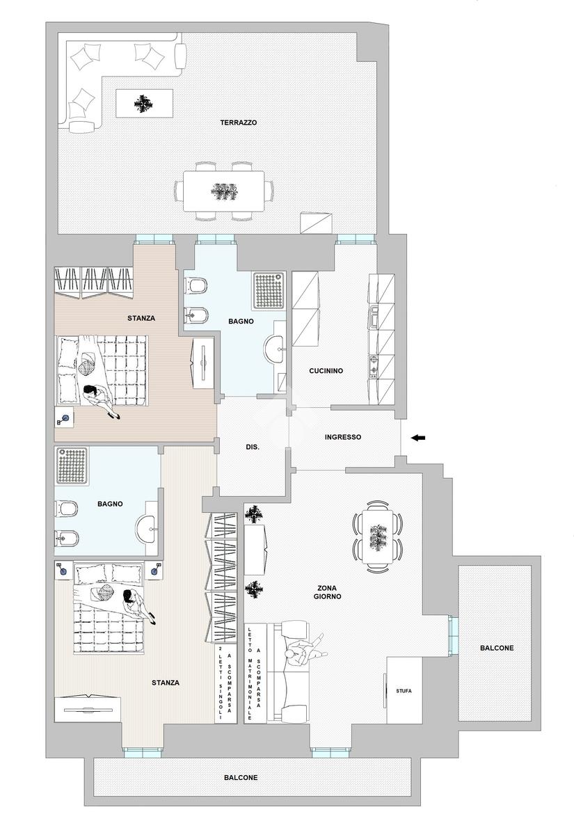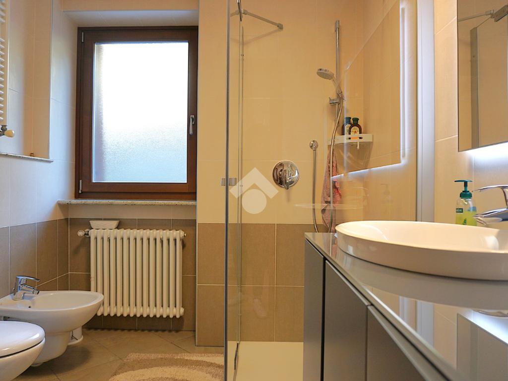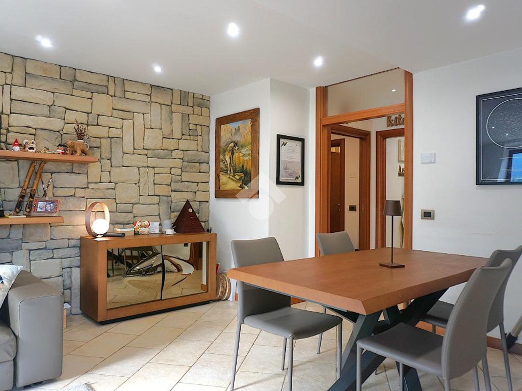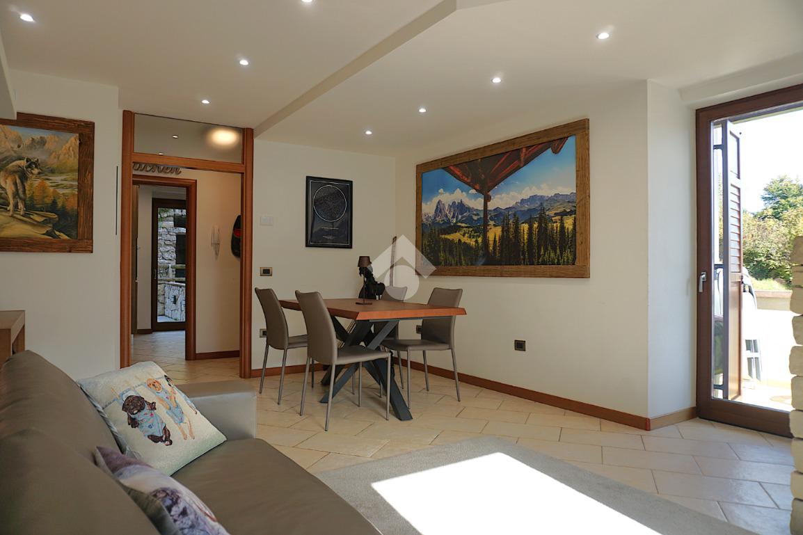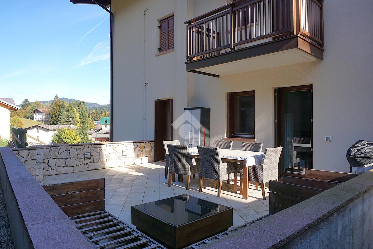 In zona riservata e panoramica, prestigioso primo piano libero su tre lati, composto da ingresso, ampia zona giorno, cucinotto, doppi servizi, due camere, disimpegno, due balconi e terrazzo di oltre 30 mq; completo di cantina e due posti auto esterni di proprietà. Riscaldamento termoautonomo a gas metano. Comodo ai servizi, a due passi dal parco e dal centro sportivo. Ottima vista sulla Paganella e sul paese. Finemente arredato.