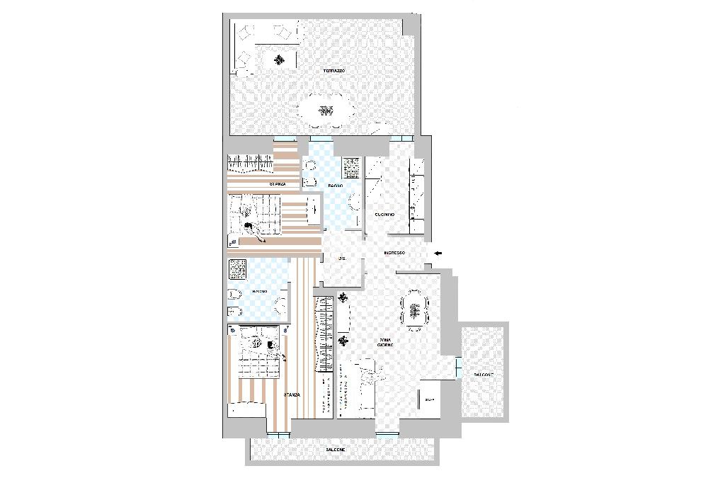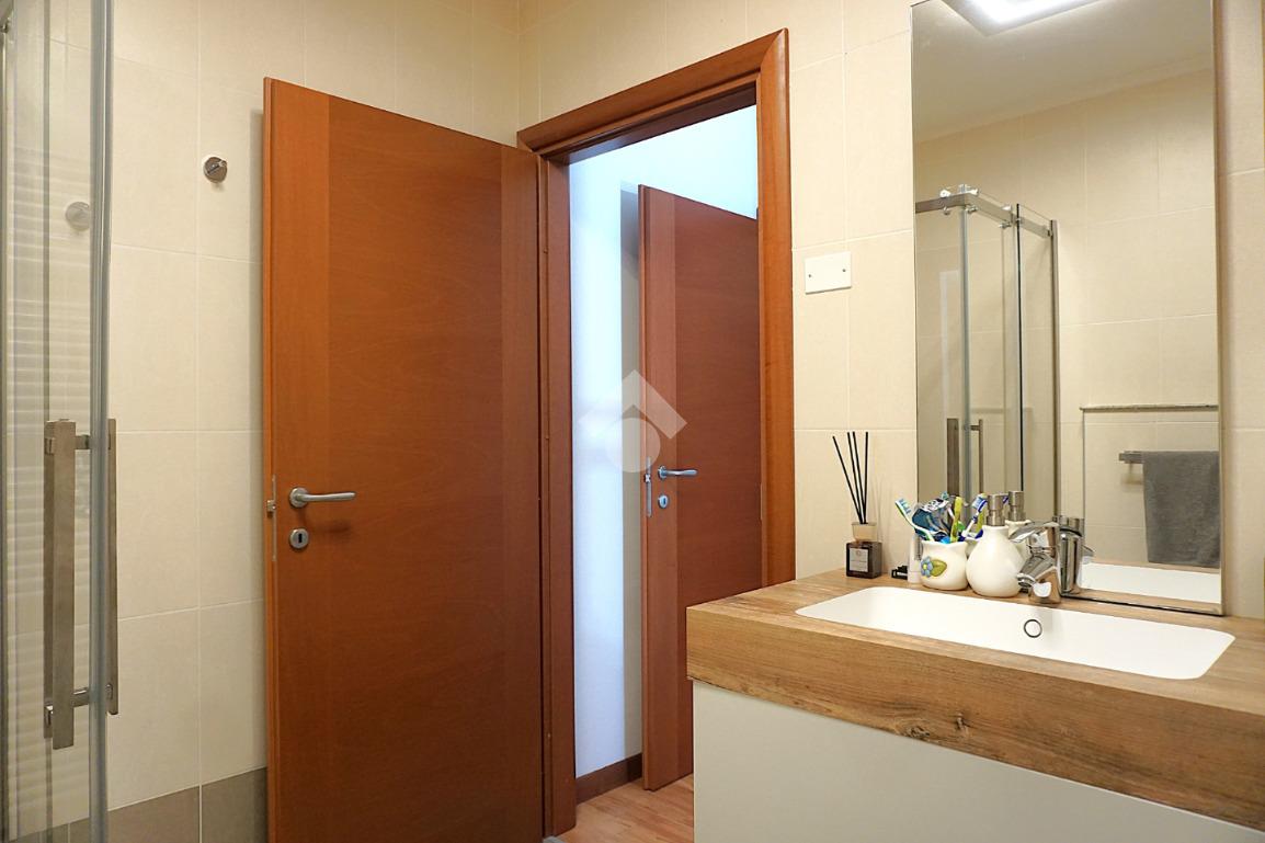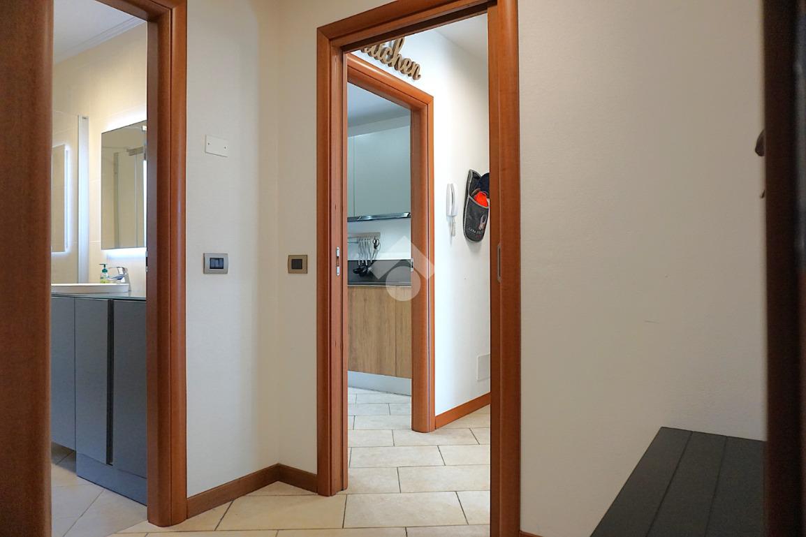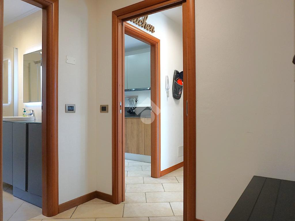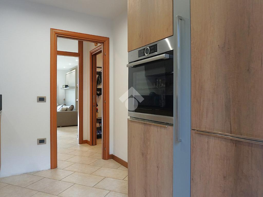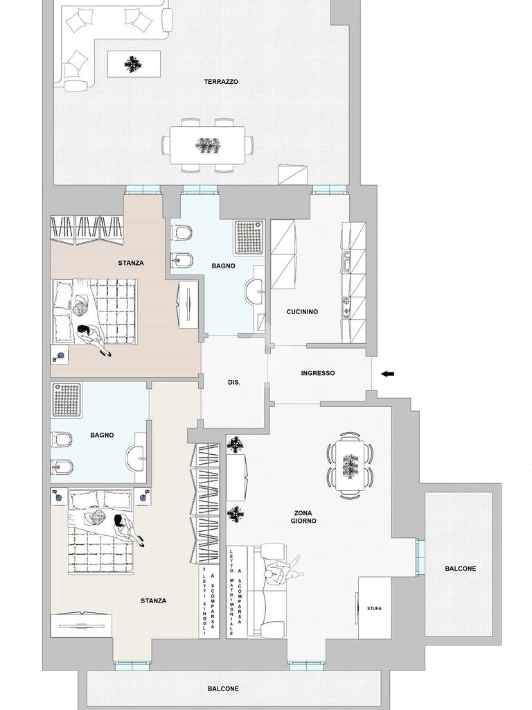 In zona riservata e panoramica, prestigioso primo piano libero su tre lati, composto da ingresso, ampia zona giorno, cucinotto, doppi servizi, due camere, disimpegno, due balconi e terrazzo di oltre 30 mq; completo di cantina e due posti auto esterni di proprietà. Riscaldamento termoautonomo a gas metano. Comodo ai servizi, a due passi dal parco e dal centro sportivo. Ottima vista sulla Paganella e sul paese. Finemente arredato.