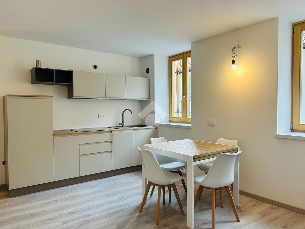 In piccolo contesto in fase di ultimazione proprio in pieno centro, elegante appartamento disposto su tre livelli così composto: a primo piano stanza, ripostiglio, scala per piano secondo con soggiorno-cucina, bagno, scala per piano mansardato con ulteriore stanza e disbrigo. Completa l'unità una cantina a piano terra. Posizione centrale e comoda a tutti i servizi. Posti auto comunali nelle immediate vicinanze. Completamente ristrutturato. Ultimazione lavori: 2025. Agevolazioni fiscali sull'acquisto.