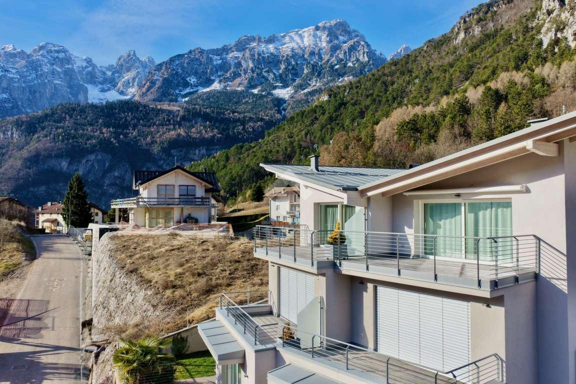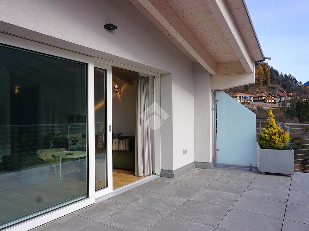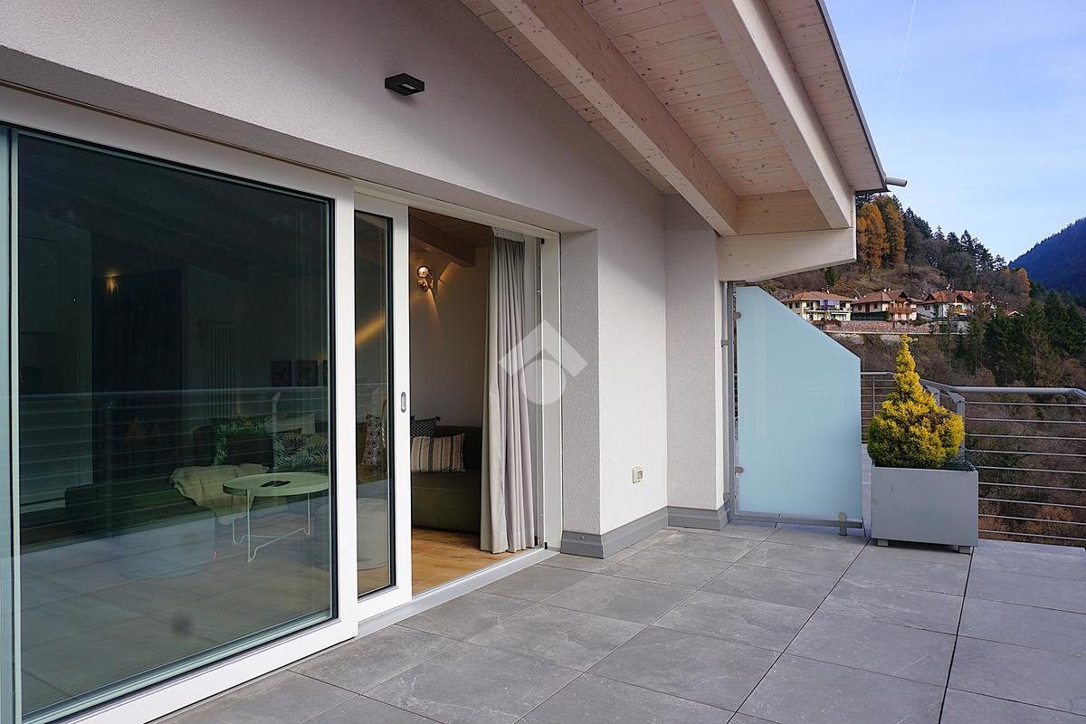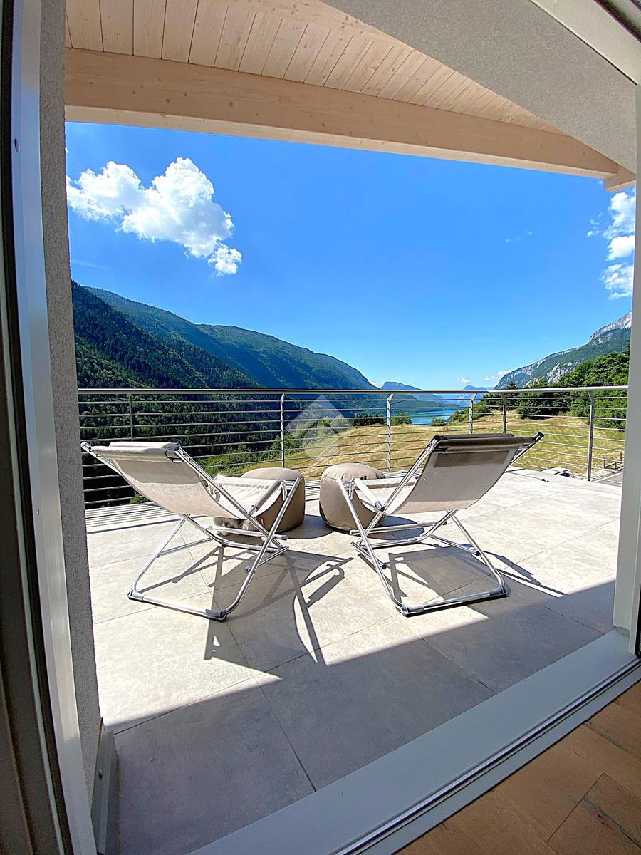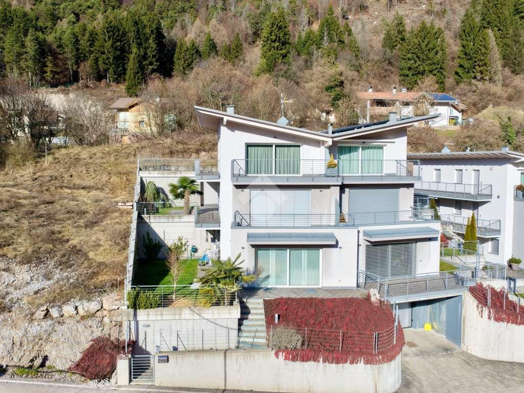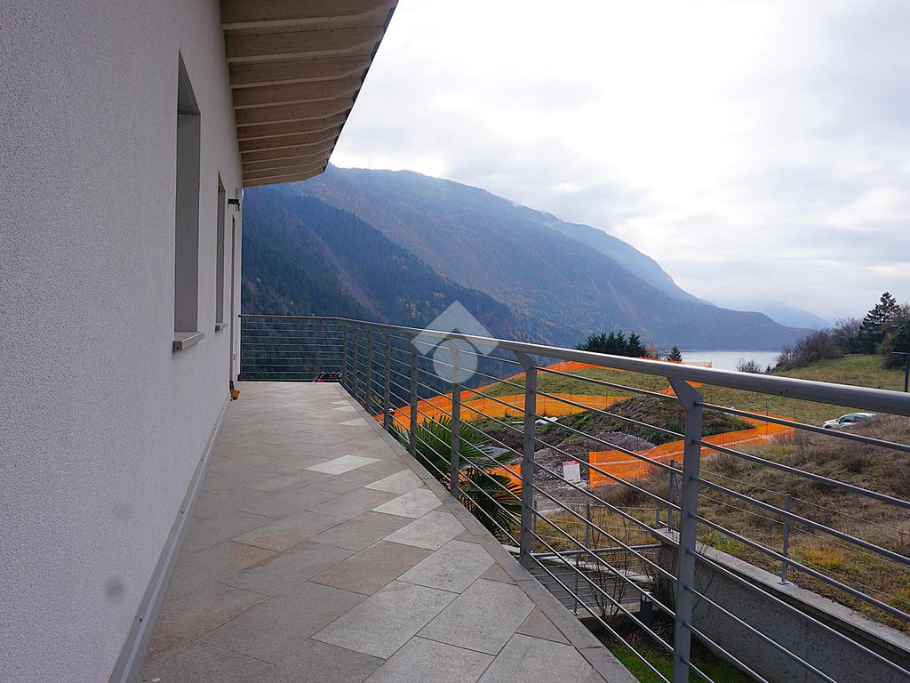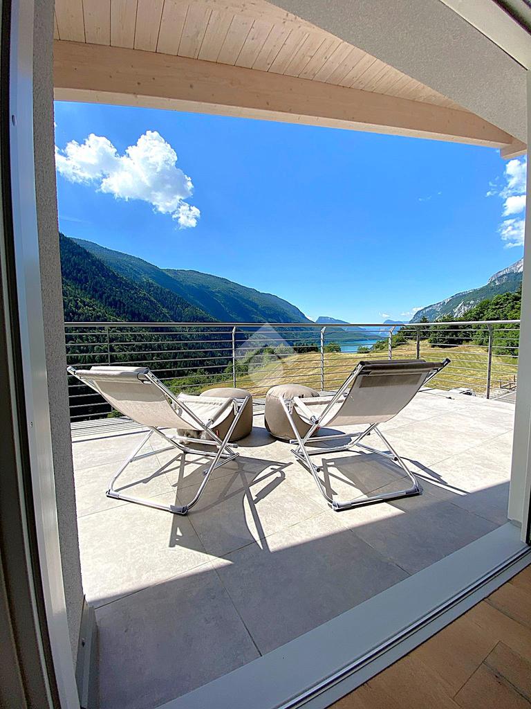 In recente palazzina di sei unità abitative, prestigioso attico con terrazzo panoramico vista lago composta da cucina-soggiorno, due stanze, bagno finestrato, corridoio, balcone e andito/giardino privato. Completa di box auto, posto auto coperto e cantina. Riscaldamento centralizzato a gas metano con conta-calorie. Pannelli solari per la produzione di acqua calda e fotovoltaici per la produzione di energia elettrica. Arredi inclusi (ad eccezione della camera matrimoniale). Ottima esposizione. Zona tranquilla con vista panoramica sul lago di Molveno e sul Brenta.