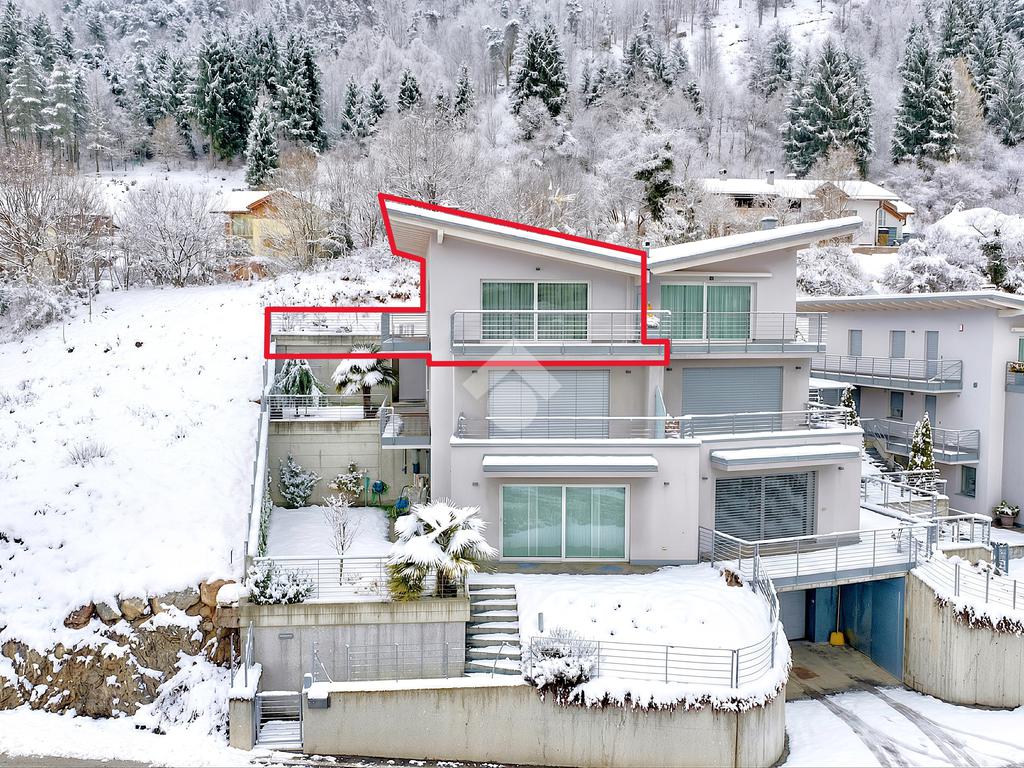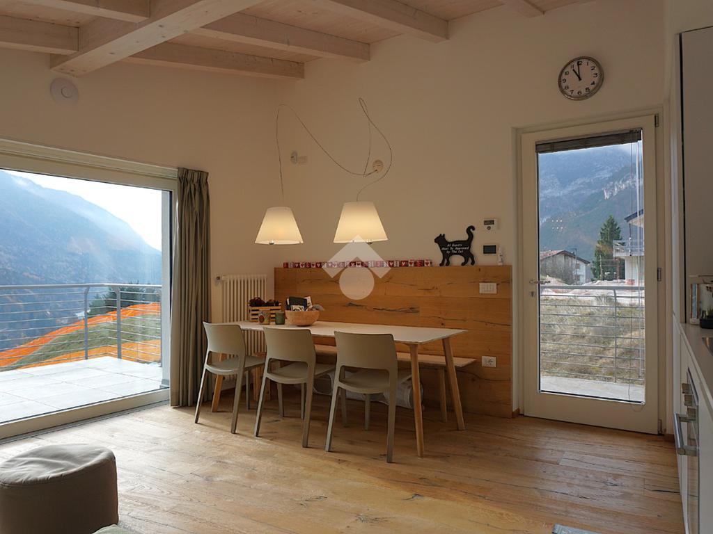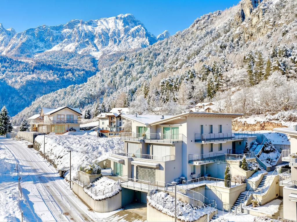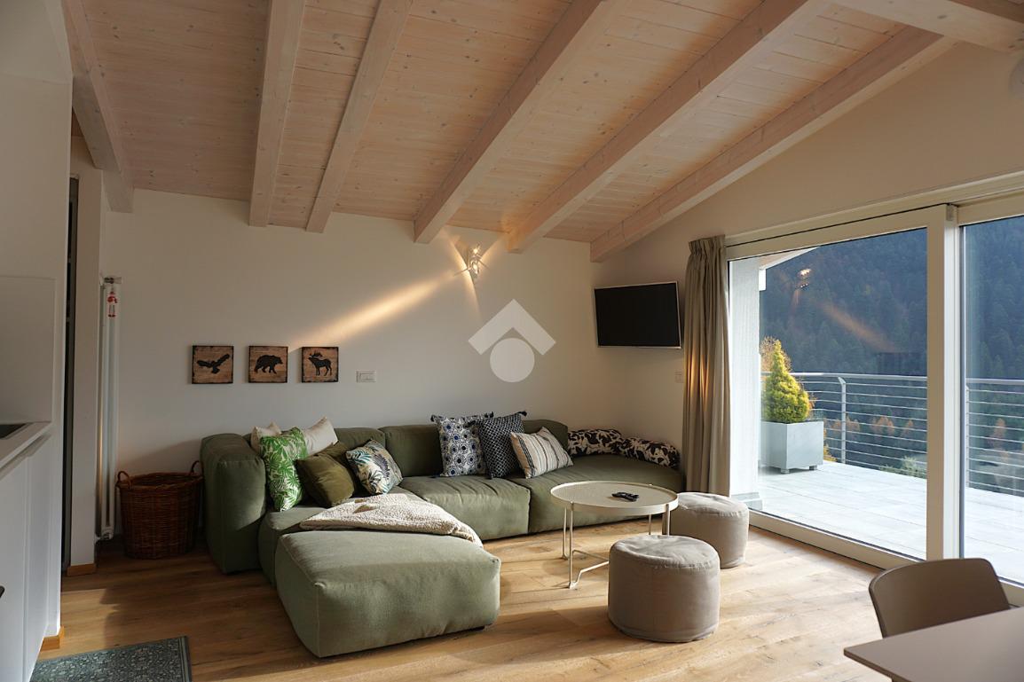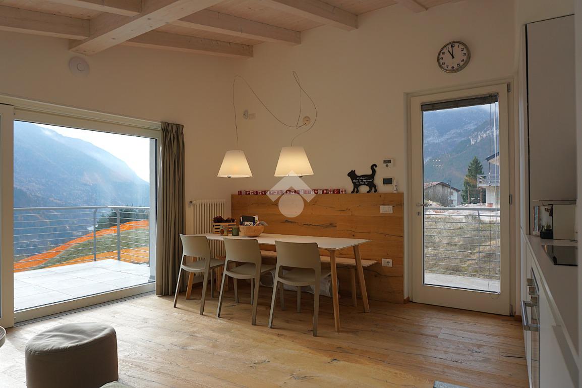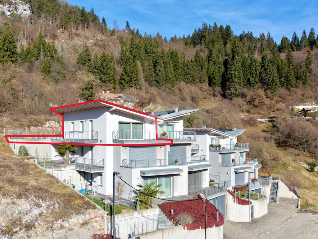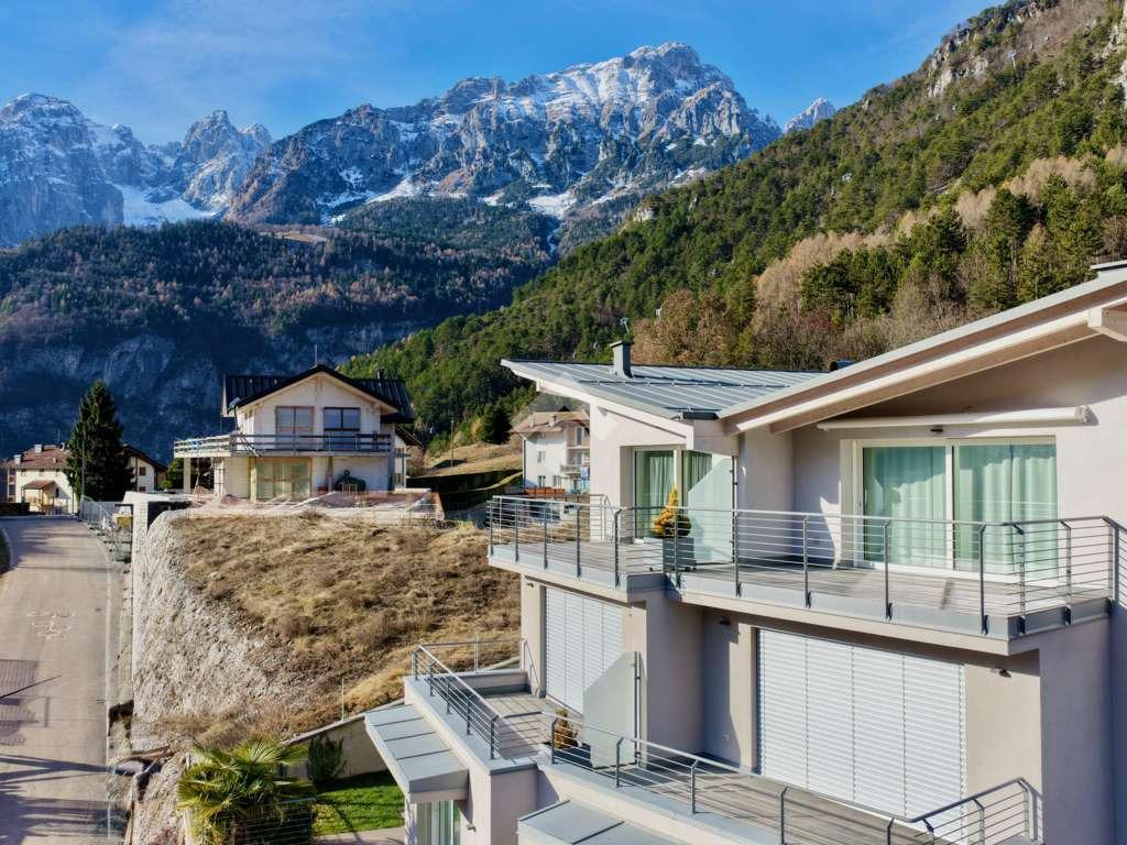 In recente palazzina di sei unità abitative, prestigioso attico con terrazzo panoramico vista lago composta da cucina-soggiorno, due stanze, bagno finestrato, corridoio, balcone e andito/giardino privato. Completa di box auto, posto auto coperto e cantina. Riscaldamento centralizzato a gas metano con conta-calorie. Pannelli solari per la produzione di acqua calda e fotovoltaici per la produzione di energia elettrica. Arredi inclusi (ad eccezione della camera matrimoniale). Ottima esposizione. Zona tranquilla con vista panoramica sul lago di Molveno e sul Brenta.