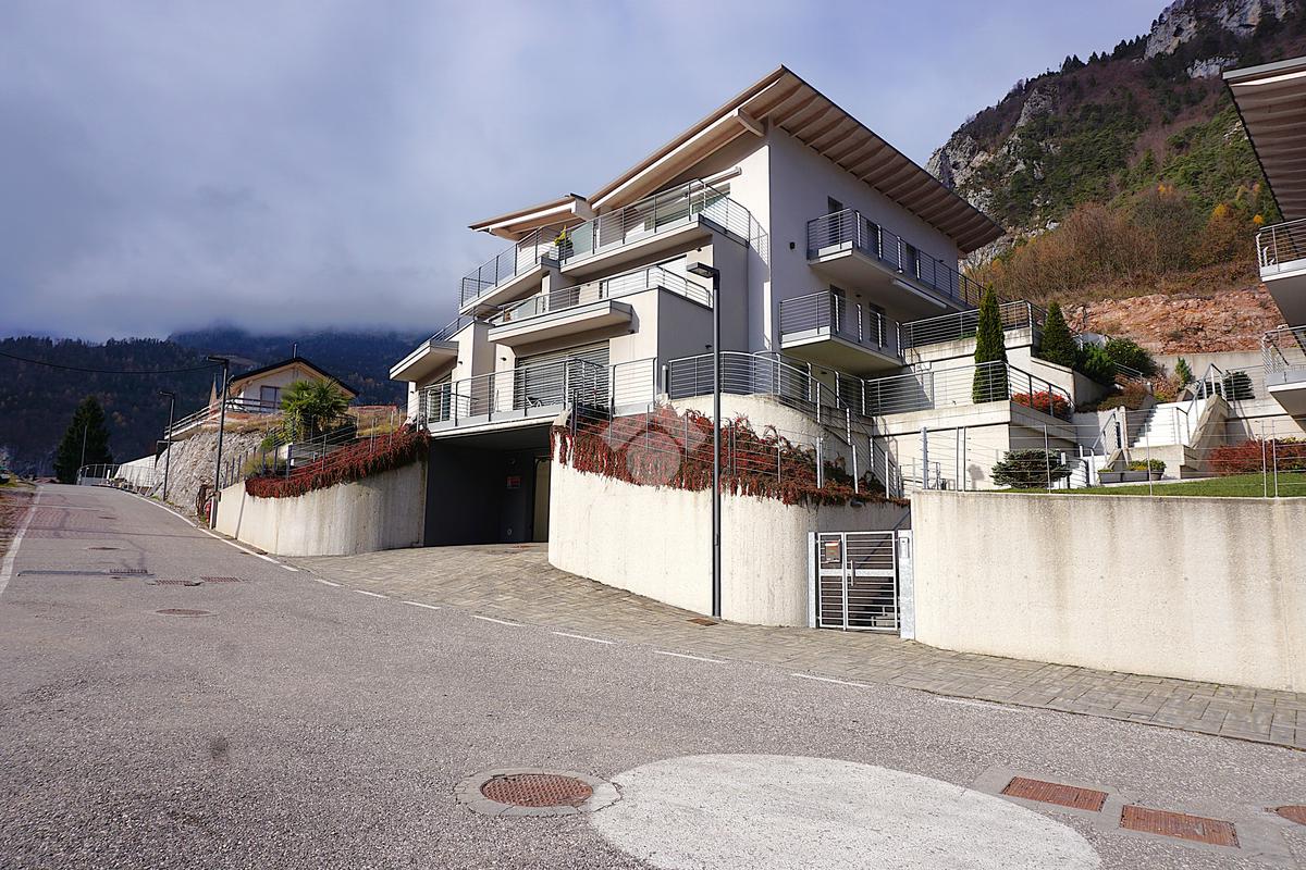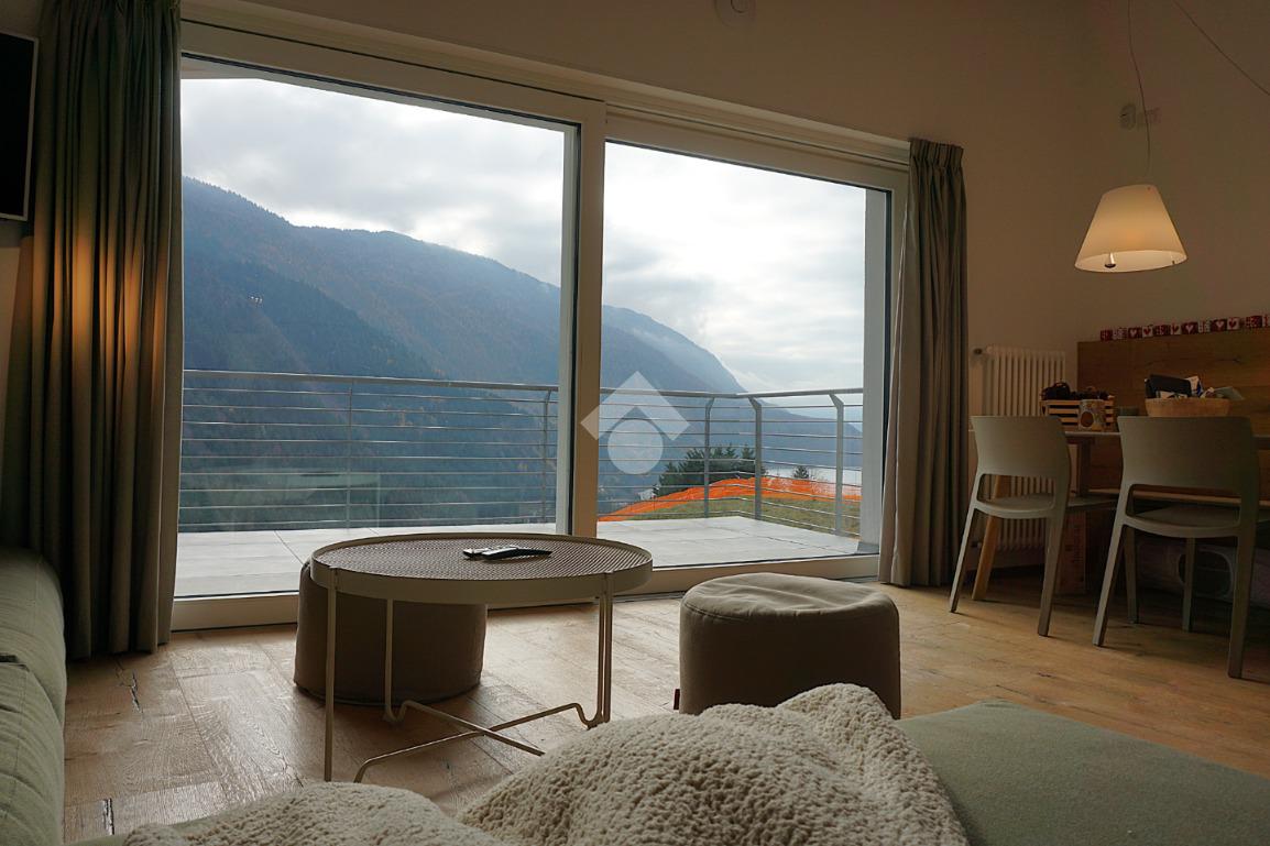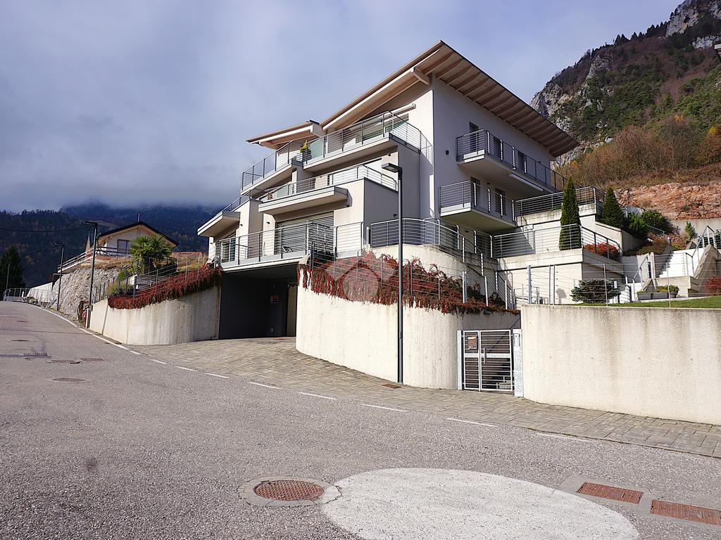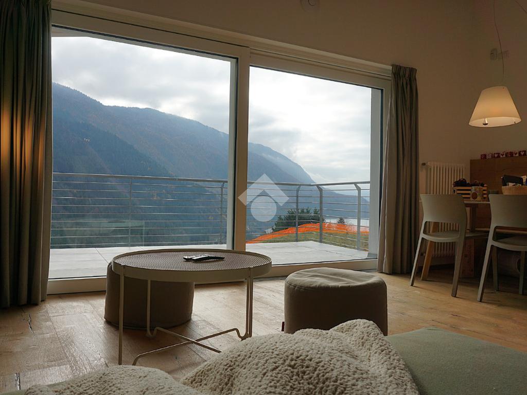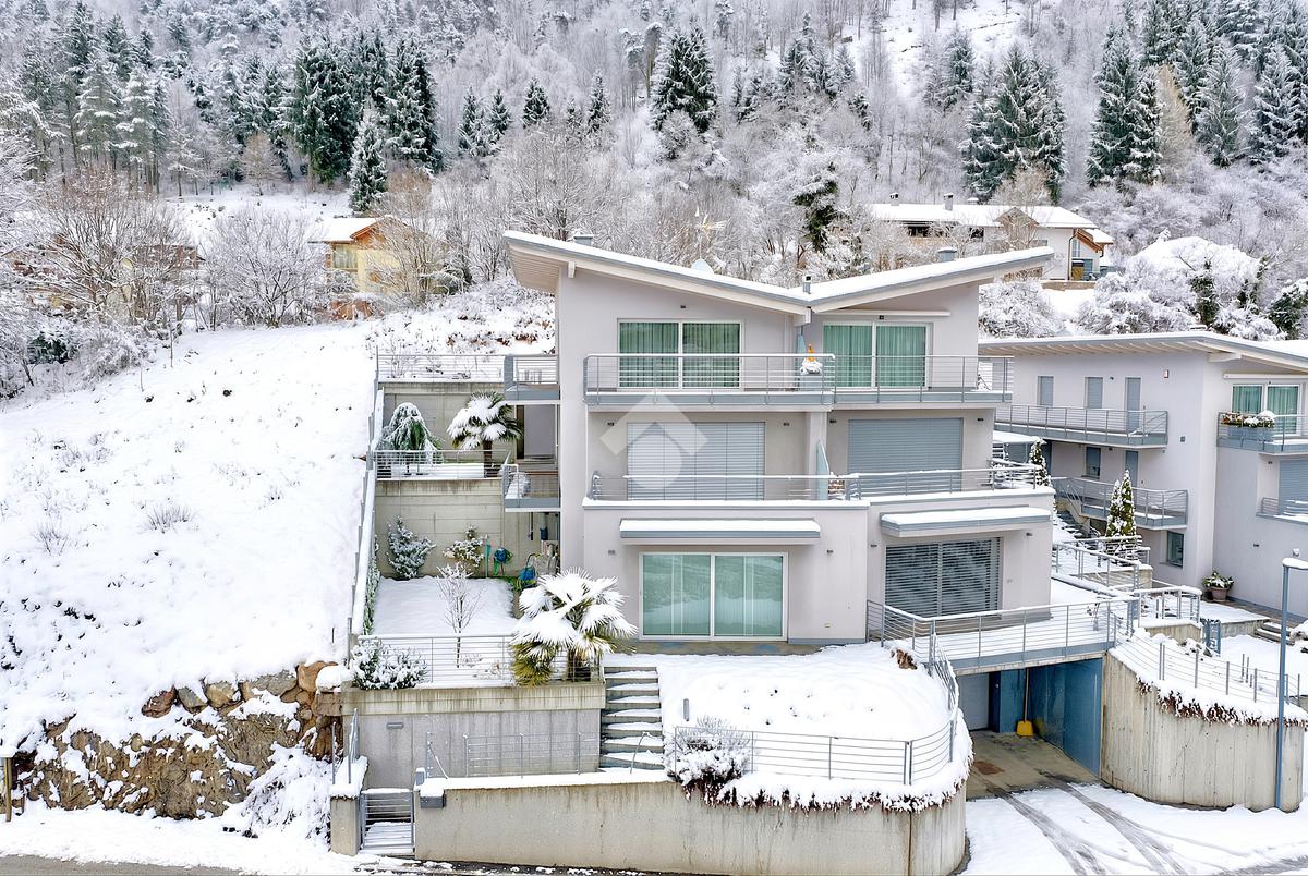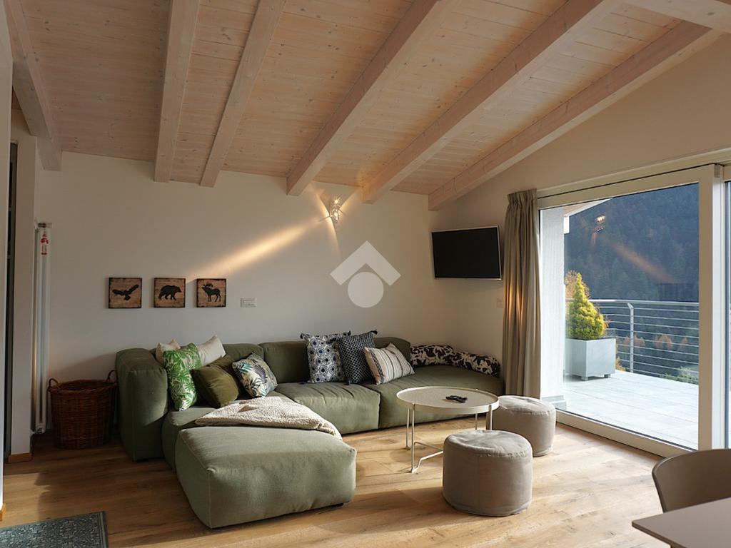 In recente palazzina di sei unità abitative, prestigioso attico con terrazzo panoramico vista lago composta da cucina-soggiorno, due stanze, bagno finestrato, corridoio, balcone e andito/giardino privato. Completa di box auto, posto auto coperto e cantina. Riscaldamento centralizzato a gas metano con conta-calorie. Pannelli solari per la produzione di acqua calda e fotovoltaici per la produzione di energia elettrica. Arredi inclusi (ad eccezione della camera matrimoniale). Ottima esposizione. Zona tranquilla con vista panoramica sul lago di Molveno e sul Brenta.