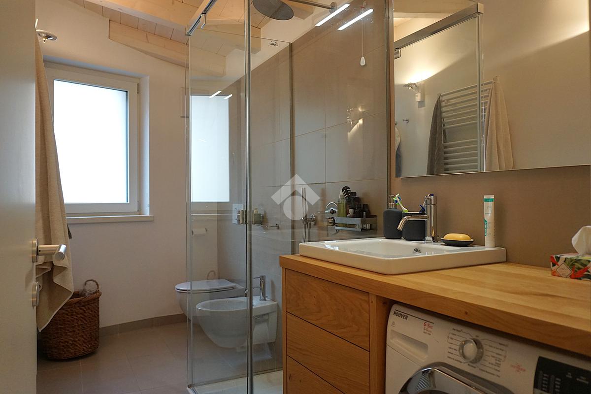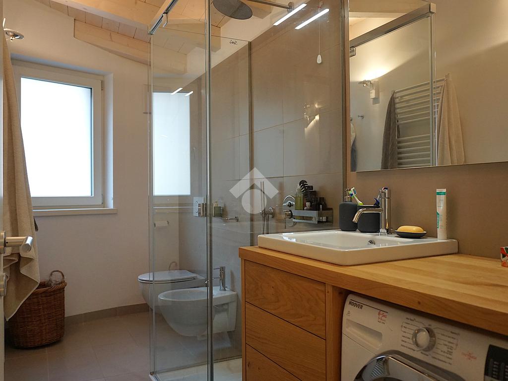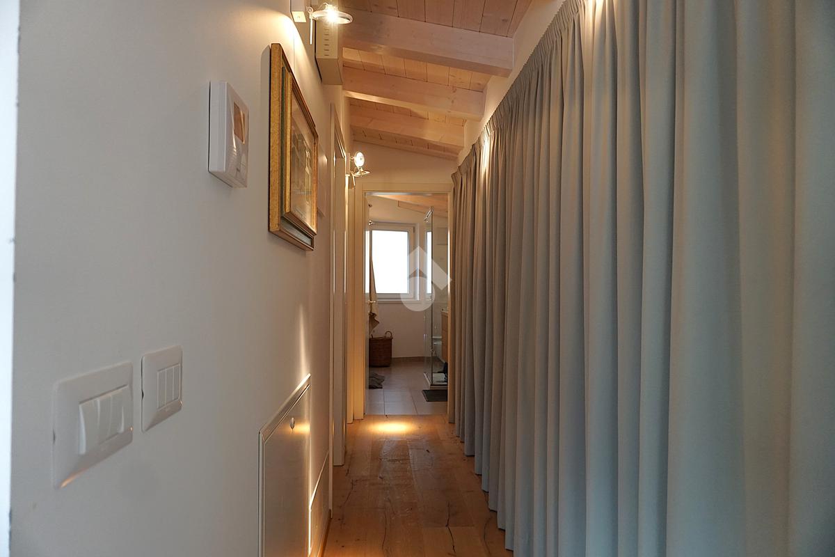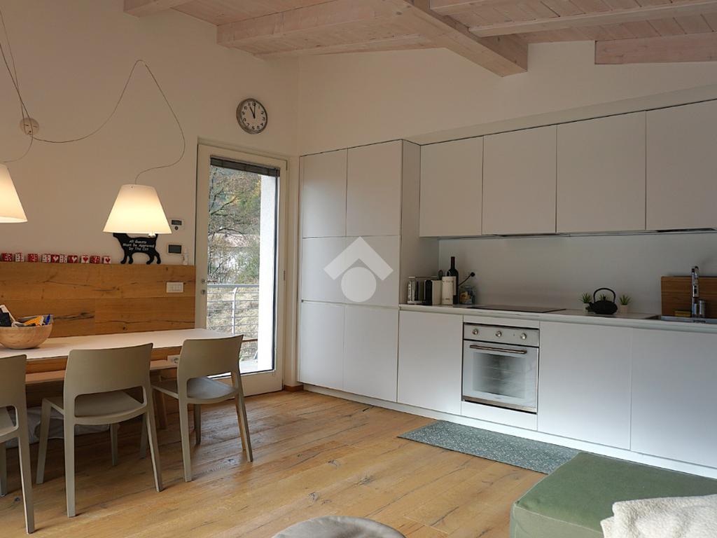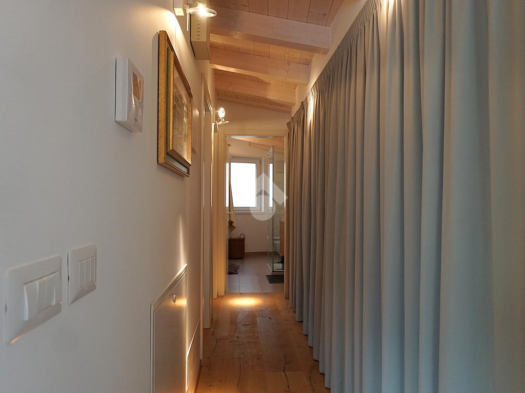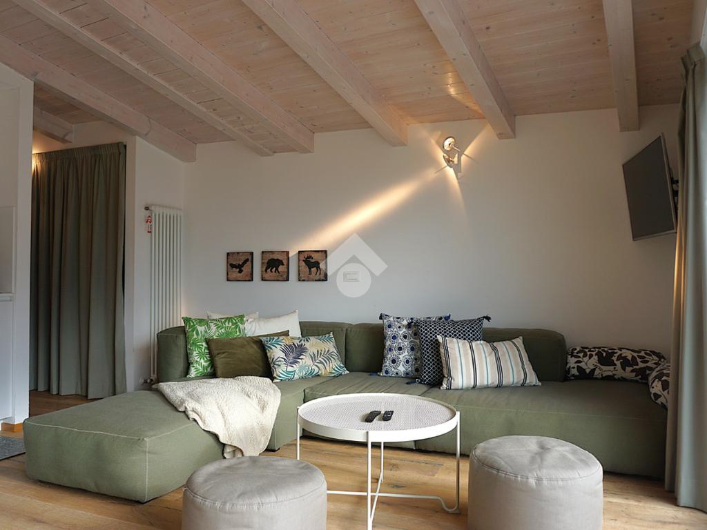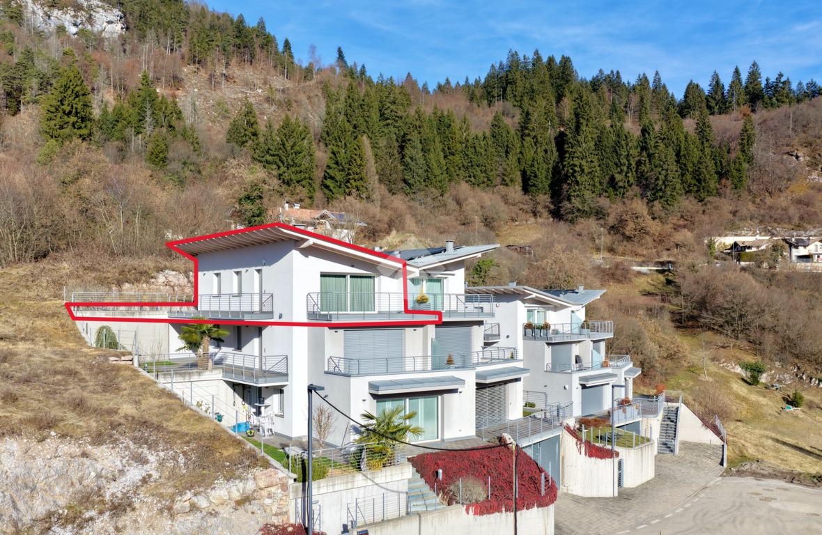 In recente palazzina di sei unità abitative, prestigioso attico con terrazzo panoramico vista lago composta da cucina-soggiorno, due stanze, bagno finestrato, corridoio, balcone e andito/giardino privato. Completa di box auto, posto auto coperto e cantina. Riscaldamento centralizzato a gas metano con conta-calorie. Pannelli solari per la produzione di acqua calda e fotovoltaici per la produzione di energia elettrica. Arredi inclusi (ad eccezione della camera matrimoniale). Ottima esposizione. Zona tranquilla con vista panoramica sul lago di Molveno e sul Brenta.