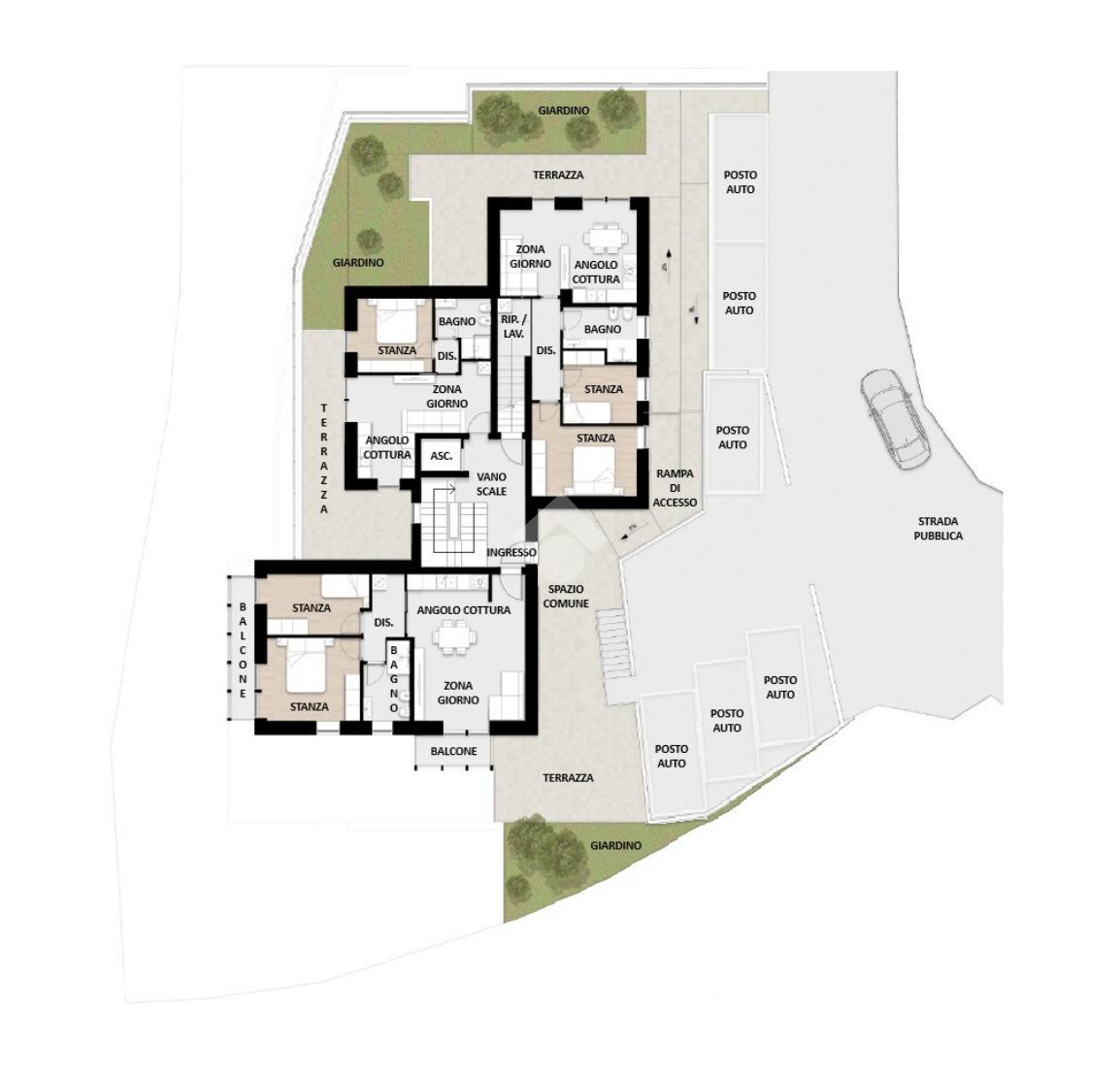 Appartamento trilocale a piano terra con giardino e terrazzo