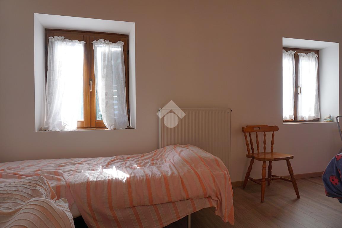 In zona caratteristica e comoda al centro abitato, piano terra composto da loggia di ingresso, cucina, soggiorno con balcone panoramico e ben esposto, disbrigo, doppi servizi e due camere da letto. A piano seminterrato ampia cantina e andito esterno ad uso posto auto. Completa il contesto un ulteriore giardino/orto. Riscaldamento termoautonomo a gpl. Zona notte completamente ristrutturata, unitamente alla posa della nuova copertura. Loggia di proprietà, ma con servitù di passo. Parzialmente arredato.