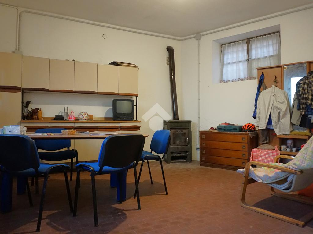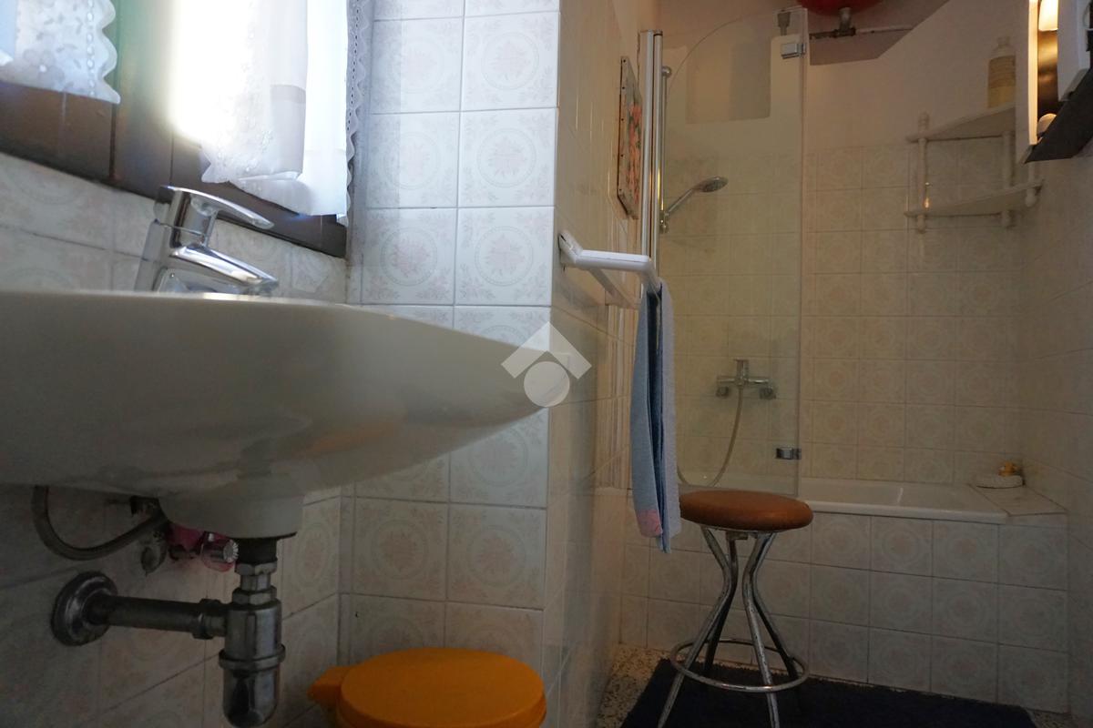 All'interno di una porzione di casa in posizione comoda e particolarmente centrale, appartamento a primo piano composto da soggiorno con cucinino, bagno, disbrigo, due stanze da letto e ampio balcone; completo di ampio garage o locali deposito con bagno a piano terra. Riscaldamento centralizzato a gas metano. Possibilità di suddivisione e vendita separata delle due unità abitative di cui si compone il contesto: primo piano attualmente esistente e seconda unità su due livelli (a secondo piano e sottotetto) con garage pertinenziali. No spese condominiali. A partire da € 110.000,00.