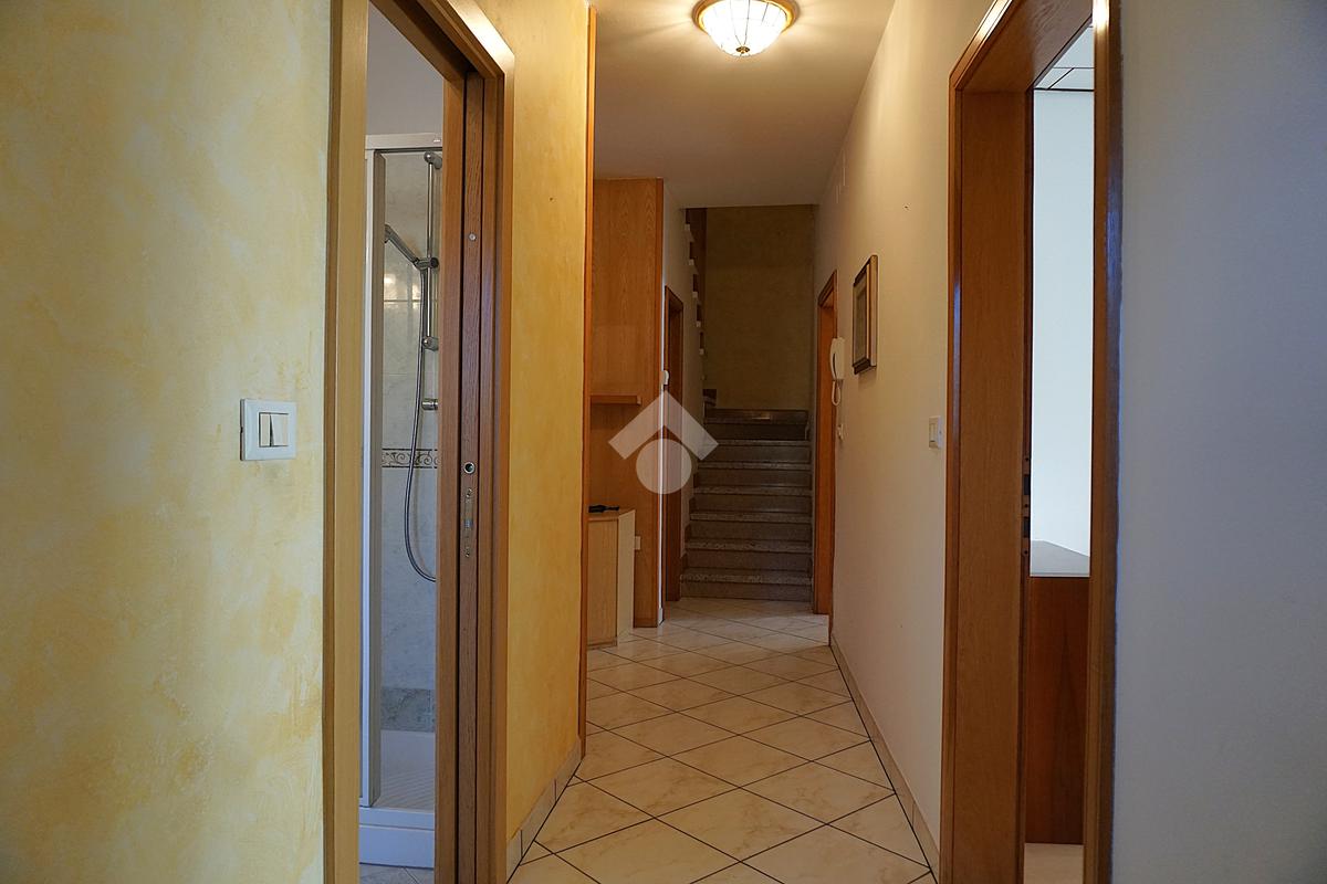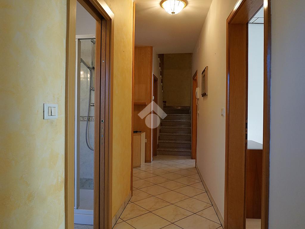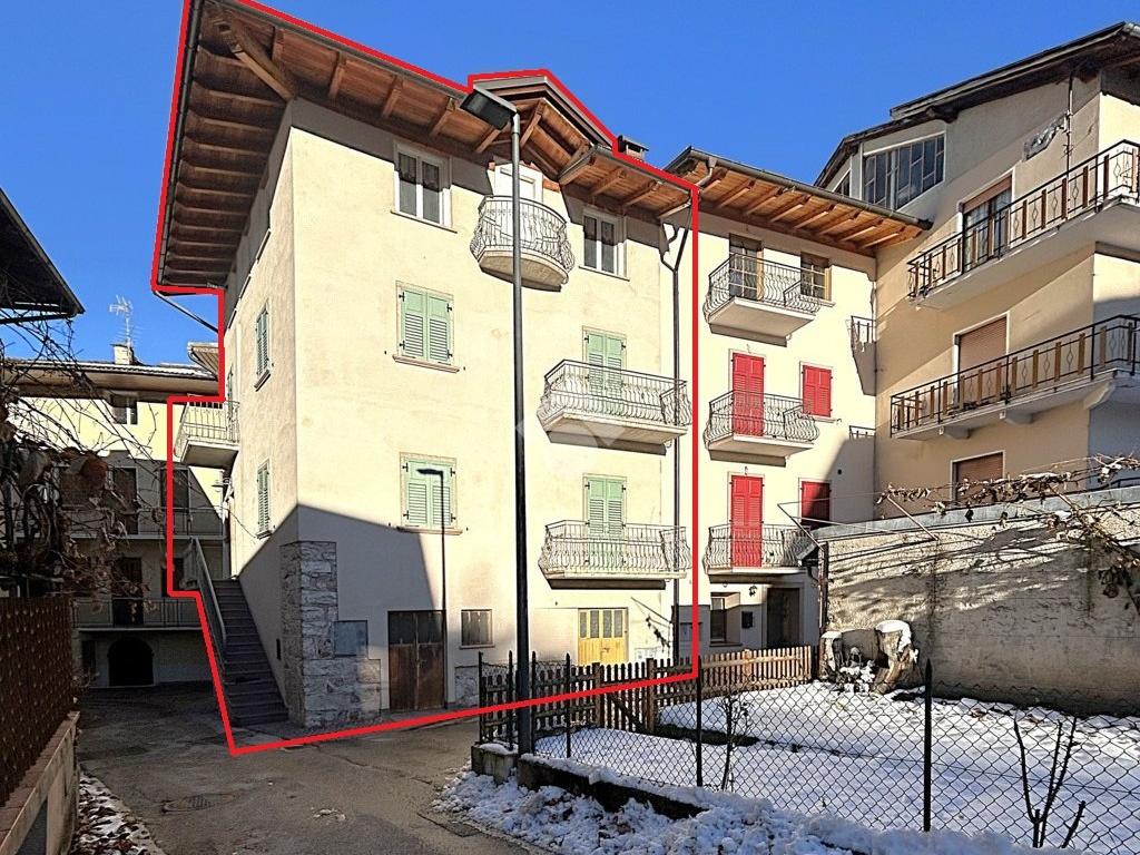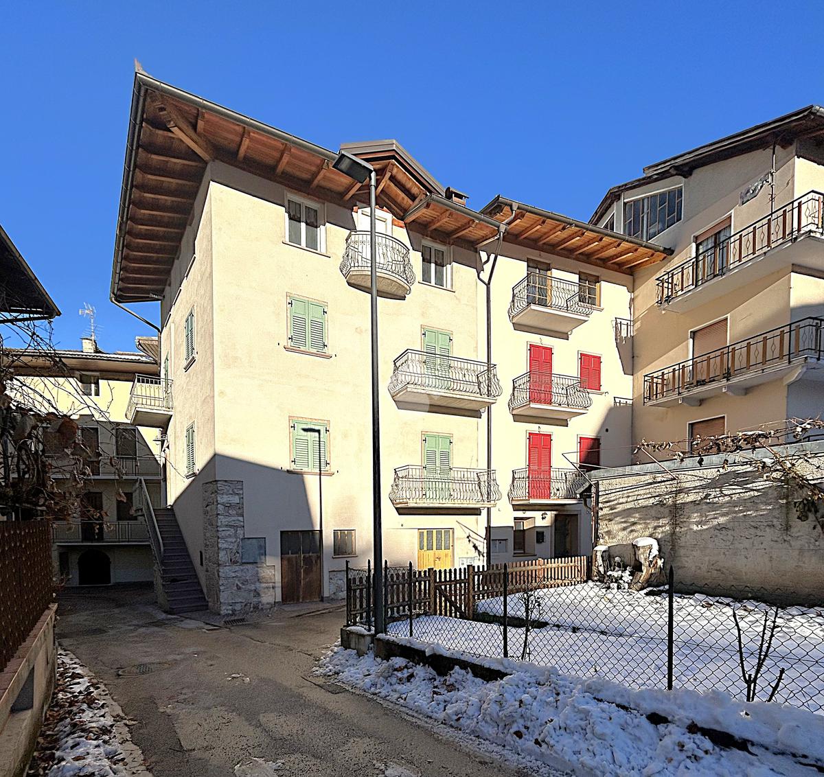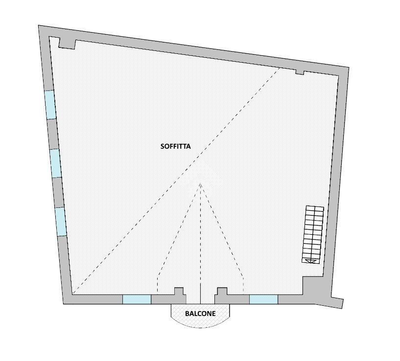 In posizione particolarmente centrale e ben esposta, ampio appartamento di circa 135 mq ca disposto su due livelli composto da: scala che da piano terra porta a primo piano con balcone; a primo piano ampio ingresso, cucina abitabile con poggiolo esposto a sud, stanza, bagno e scala che porta al secondo piano; a secondo piano disimpegno, soggiorno, due stanze, sottoscala e 2 balconi; scala che porta all’ampia soffitta di 65 mq al terzo piano soffitta attualmente al grezzo con balconcino. A piano terra locali ad uso cantina, deposito, centrale termica e bagno di complessivi 55 mq. Completa la proprietà il terreno di ca 80 mq attualmente adibito ad orto ma con possibilità di uso posti auto esterni. Ristrutturazione facciata esterna, poggioli, serramenti esterni, intonaco termico e tetto nel 2004; 1 livello ristrutturato nel 2005.