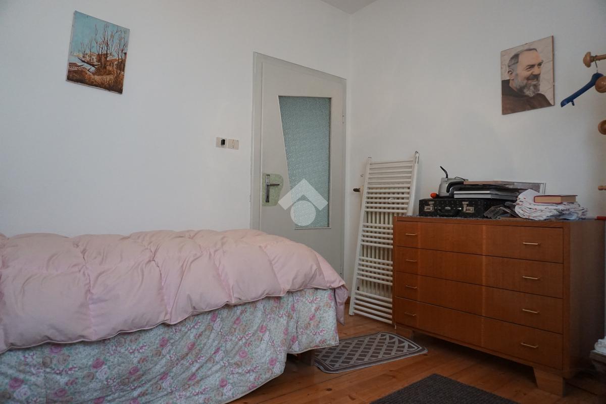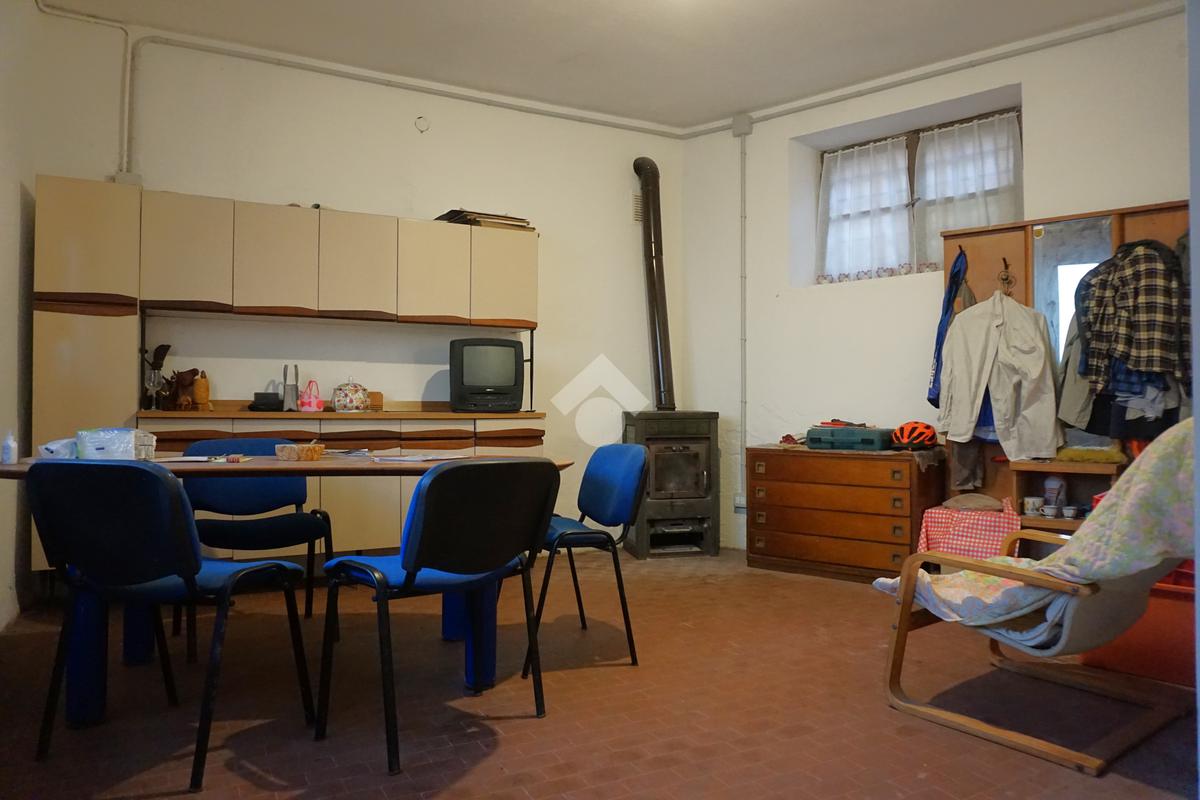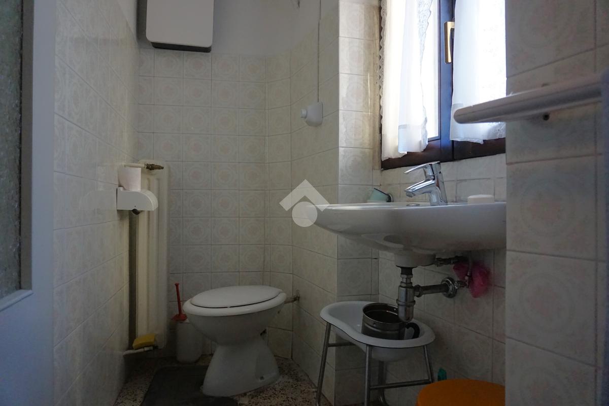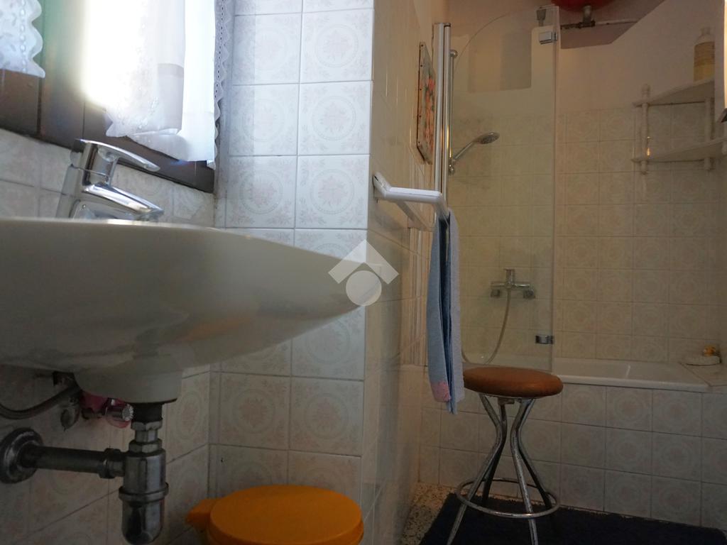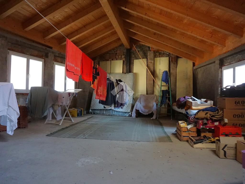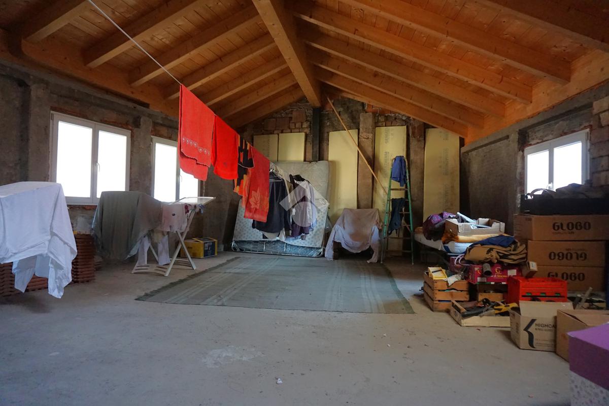 In posizione comoda e particolarmente centrale, intera porzione di casa composta da appartamento a primo piano con soggiorno-cucina, bagno, disbrigo, due stanze da letto e ampio balcone; a secondo piano ulteriori tre camere da letto, balcone, disbrigo e bagno. Sottotetto con soffitta abitabile al grezzo, oltre ad ampio garage e locali deposito con bagno a piano terra. Riscaldamento centralizzato a gas metano. Possibilità di suddivisione e vendita separata della due unità abitative: primo piano attualmente esistente e unità su due livelli (a secondo piano e sottotetto) con garage pertinenziali. No spese condominiali.