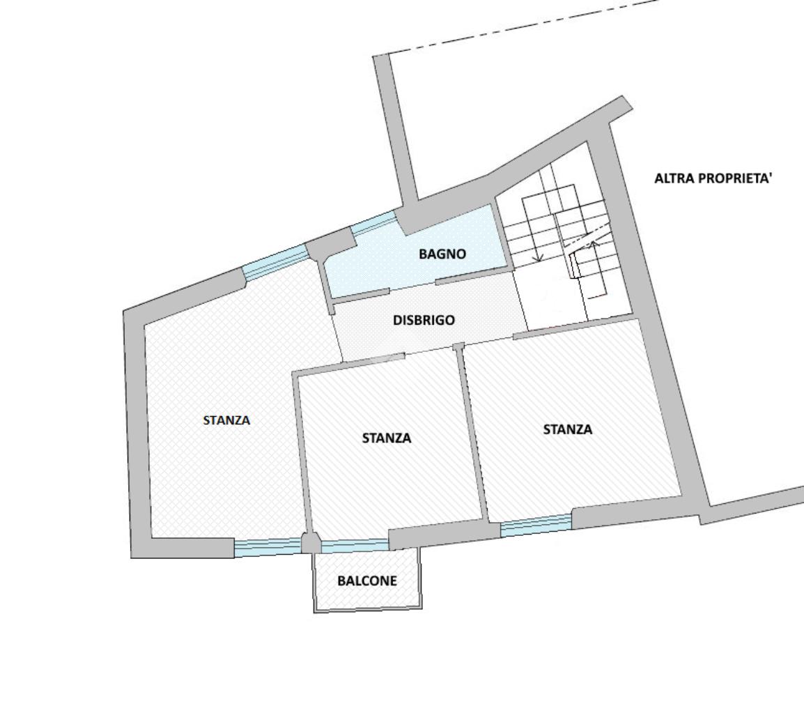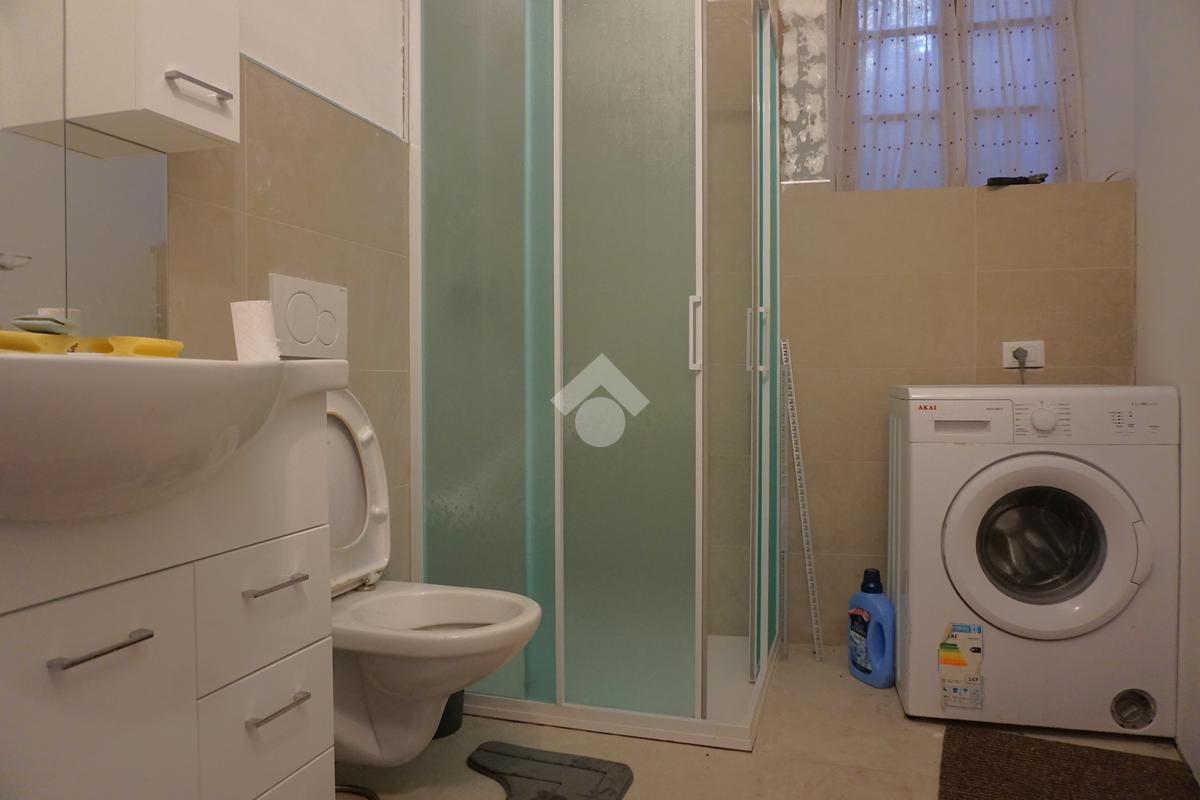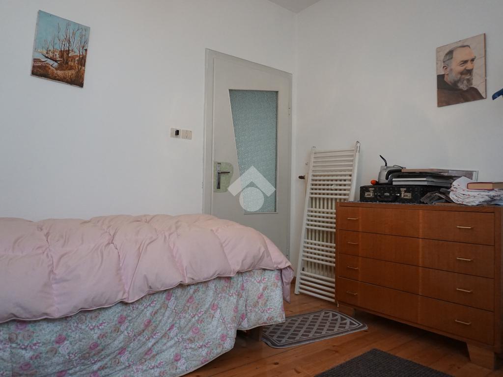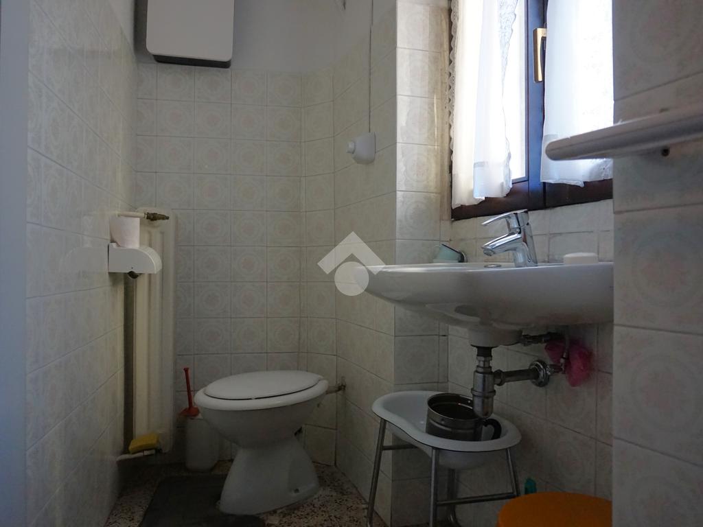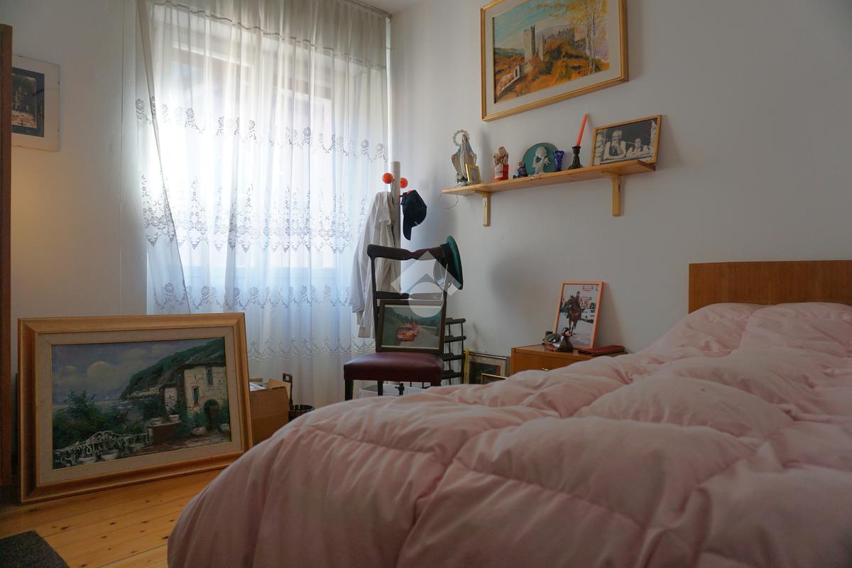 In posizione comoda e particolarmente centrale, intera porzione di casa composta da appartamento a primo piano con soggiorno-cucina, bagno, disbrigo, due stanze da letto e ampio balcone; a secondo piano ulteriori tre camere da letto, balcone, disbrigo e bagno. Sottotetto con soffitta abitabile al grezzo, oltre ad ampio garage e locali deposito con bagno a piano terra. Riscaldamento centralizzato a gas metano. Possibilità di suddivisione e vendita separata della due unità abitative: primo piano attualmente esistente e unità su due livelli (a secondo piano e sottotetto) con garage pertinenziali. No spese condominiali.